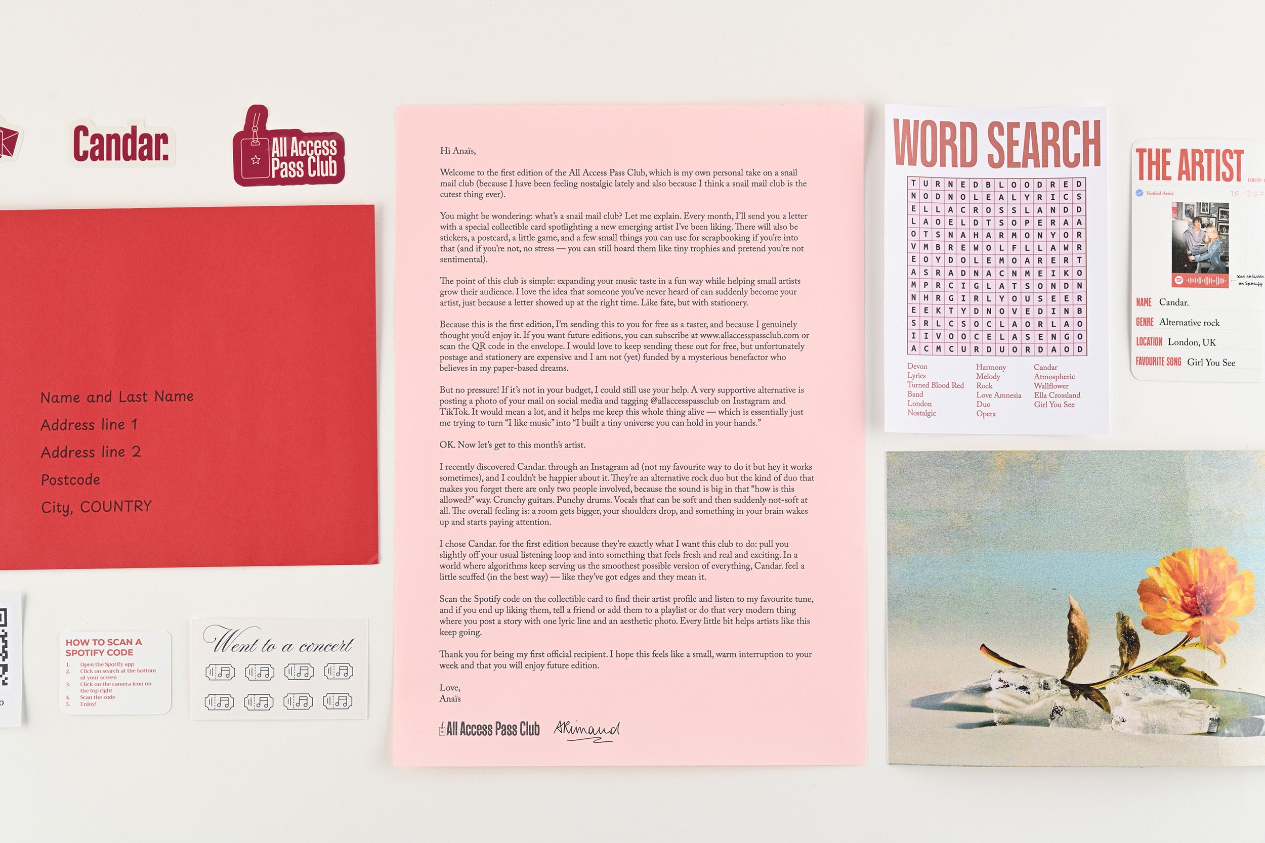 Each month, receive a curated letter spotlighting one small artist or band with some exclusive art curated for each edition.